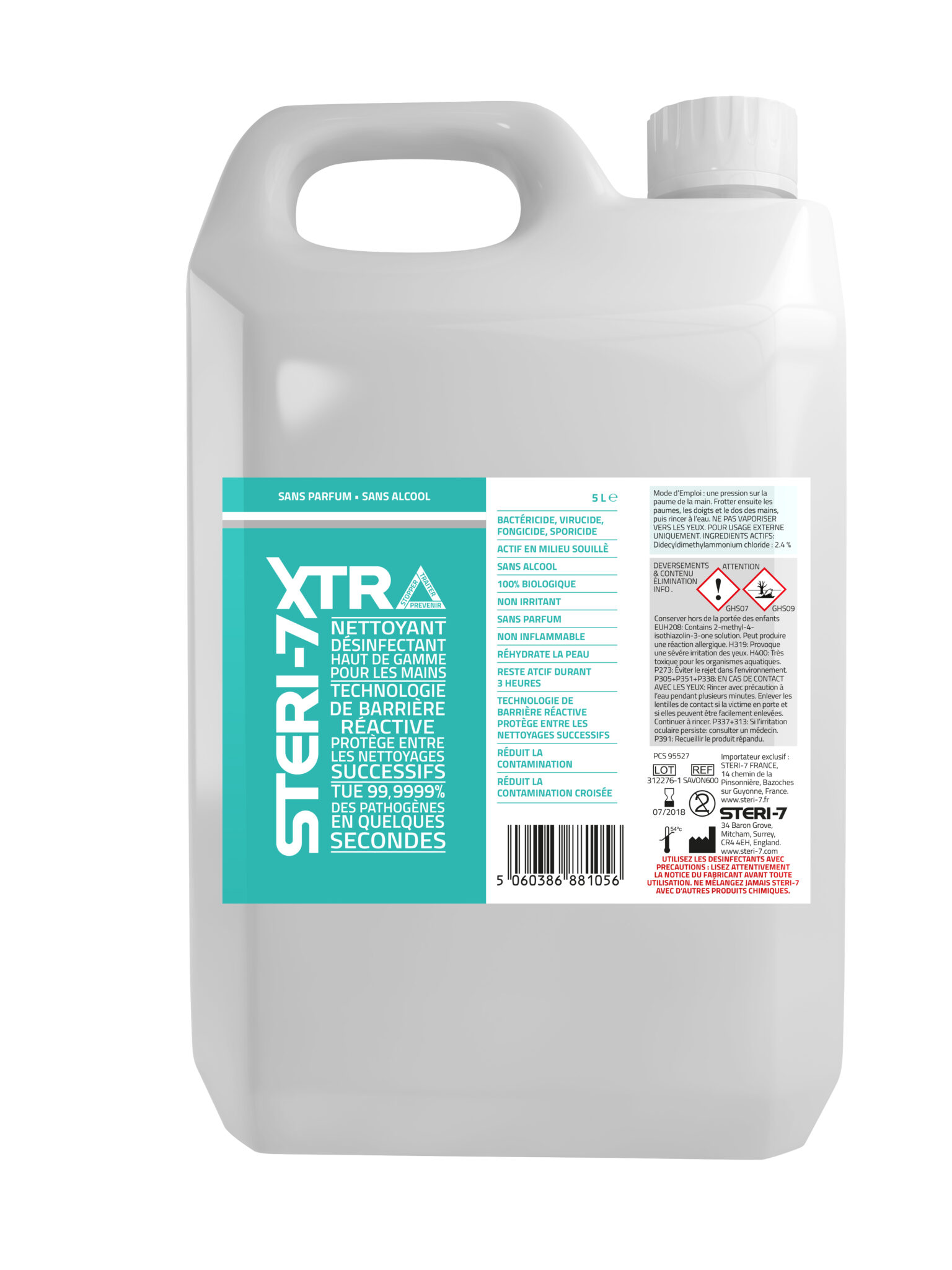 - STERI- 7 XTRA est conforme aux normes de la directive européenne sur les produits biocides (règlement de l’UE 98/8 / CE).